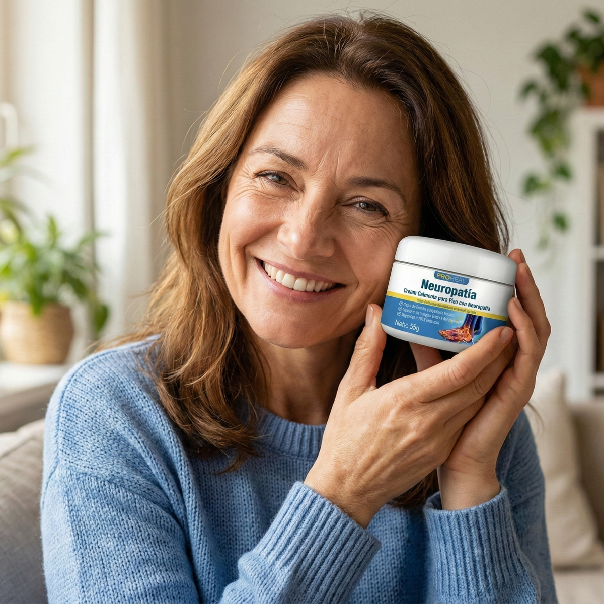"La neuropatía me provoca esa sensación horrible de estar usando ‘calcetines invisibles’ y un dolor punzante constante. Esta crema me da un descanso que no había encontrado antes. Me calma y me permite caminar con más comodidad."